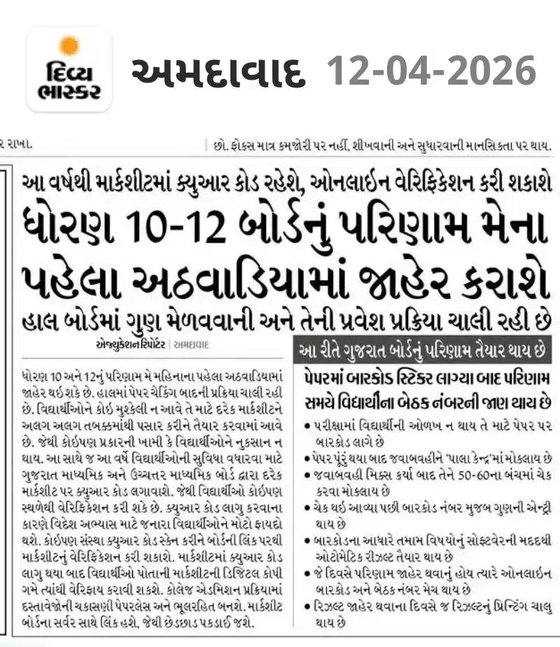 ગુજરાત માધ્યમિક અને ઉચ્ચતર માધ્યમિક શૈક્ષણિક બોર્ડ ગાંધીનગર દ્વારા ગત 26 ફેબ્રુઆરી થી 18 માર્ચ દરમિયાન ધોરણ 10 અને 12 સામાન્ય પ્રવાહ, વિજ્ઞાન પ્રવાહ અને અન્ય માધ્યમો ની પરીક્ષા લેવામાં આવી હતી. પરીક્ષા પૂર્ણ થઈ ગયા બાદ હવે સૂત્રોના જણાવ્યા અનુસાર બોર્ડનું પરિણામ મે મહિનાના પ્રથમ અઠવાડિયામાં જાહેર થવાની સંભાવના છે. જે Board Exam Result 2026 કે જે તમે https://www.gseb.org પરથી જોઇ શકો છો.