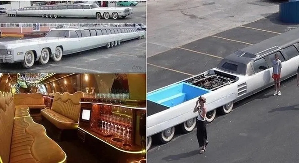 The car has luxury amenities like a swimming pool, jacuzzi, waterbed, mini-golf course and bathtub inside the car.